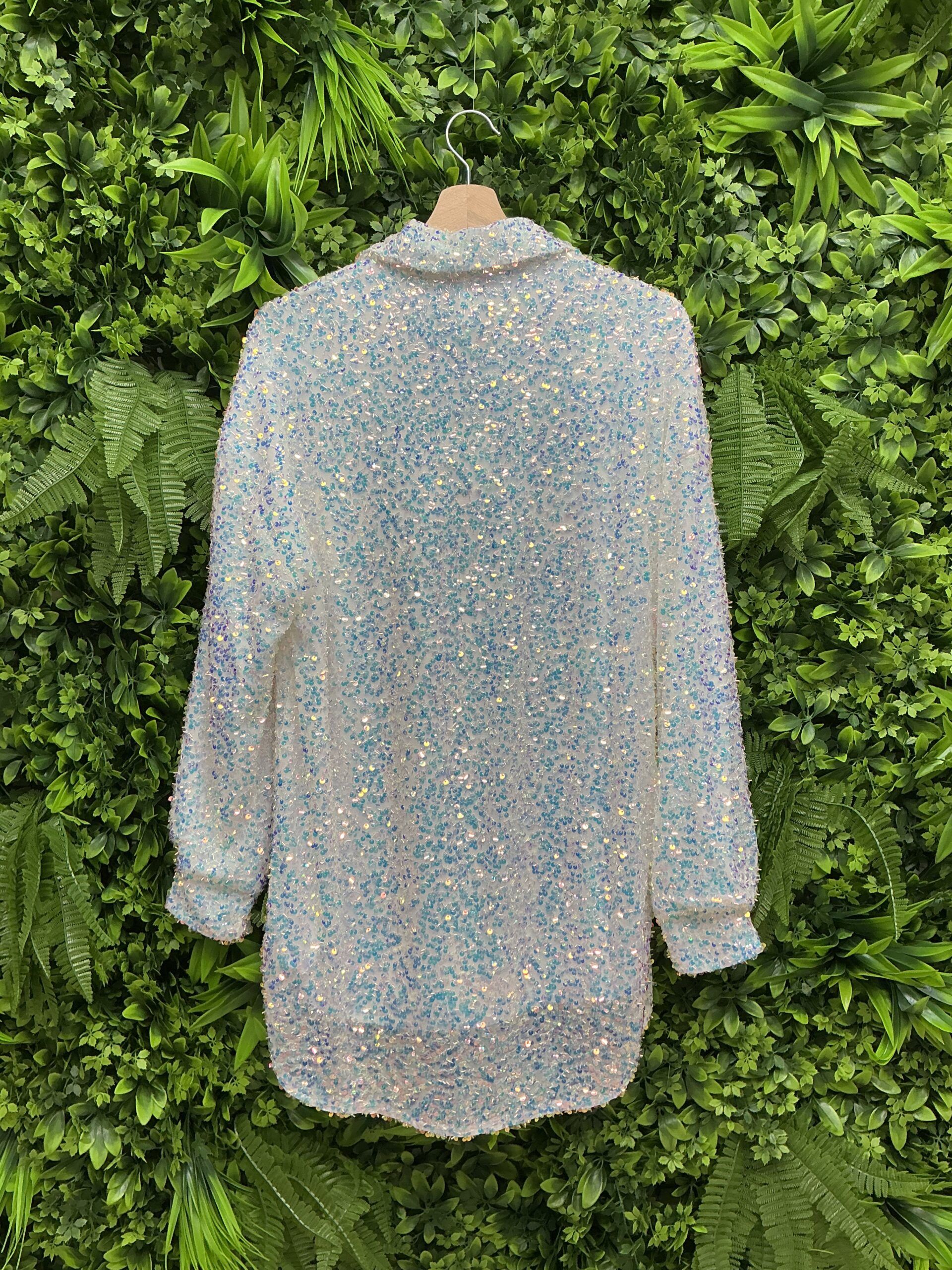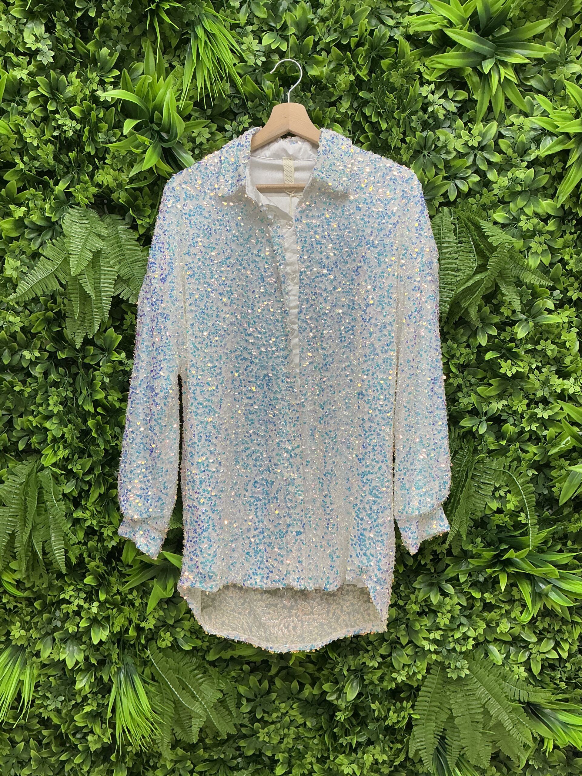Camicia elegante in paillette scintillanti, elastan e poliestere, perfetta per le serate invernali adatto per le feste e natale