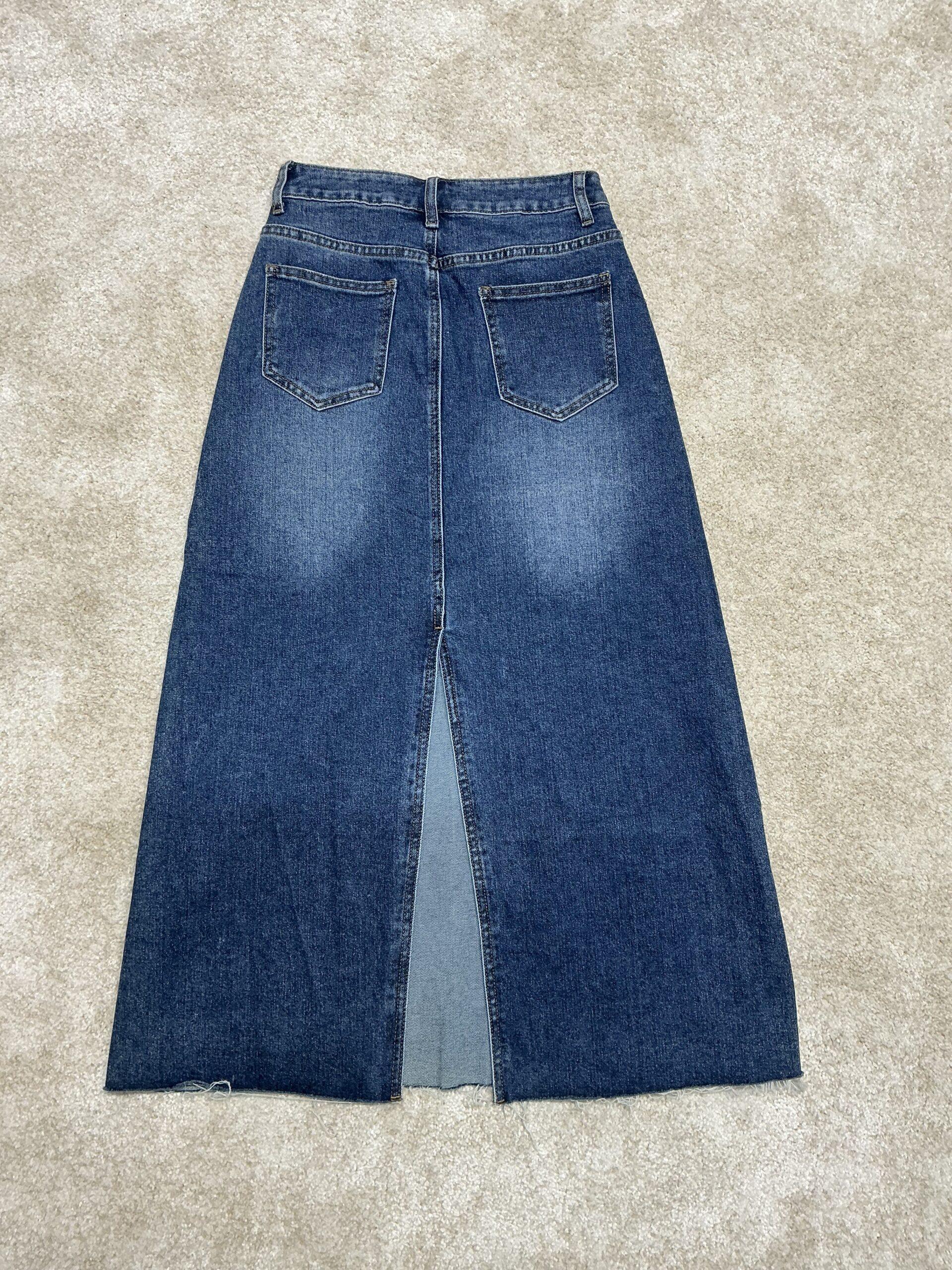 Gonna lunga in jeans elegante, 75% cotone, per la primavera. Design con bottoni e tasche, ideale per ogni occasione.
