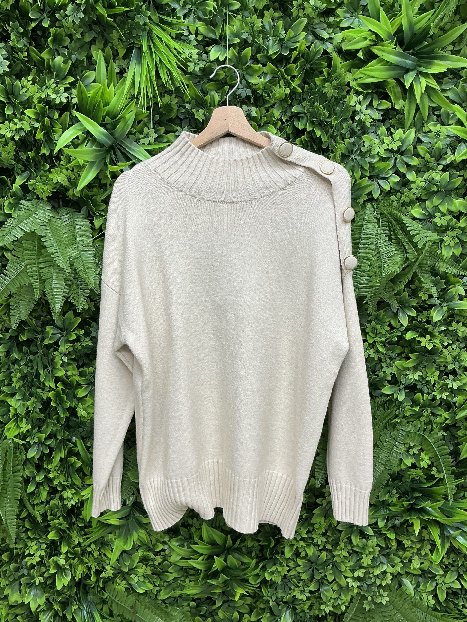 Maglia donna manica lunga in viscosa e nylon, bottoni decorativi, perfetta per l’autunno. Prodotto in Cina.