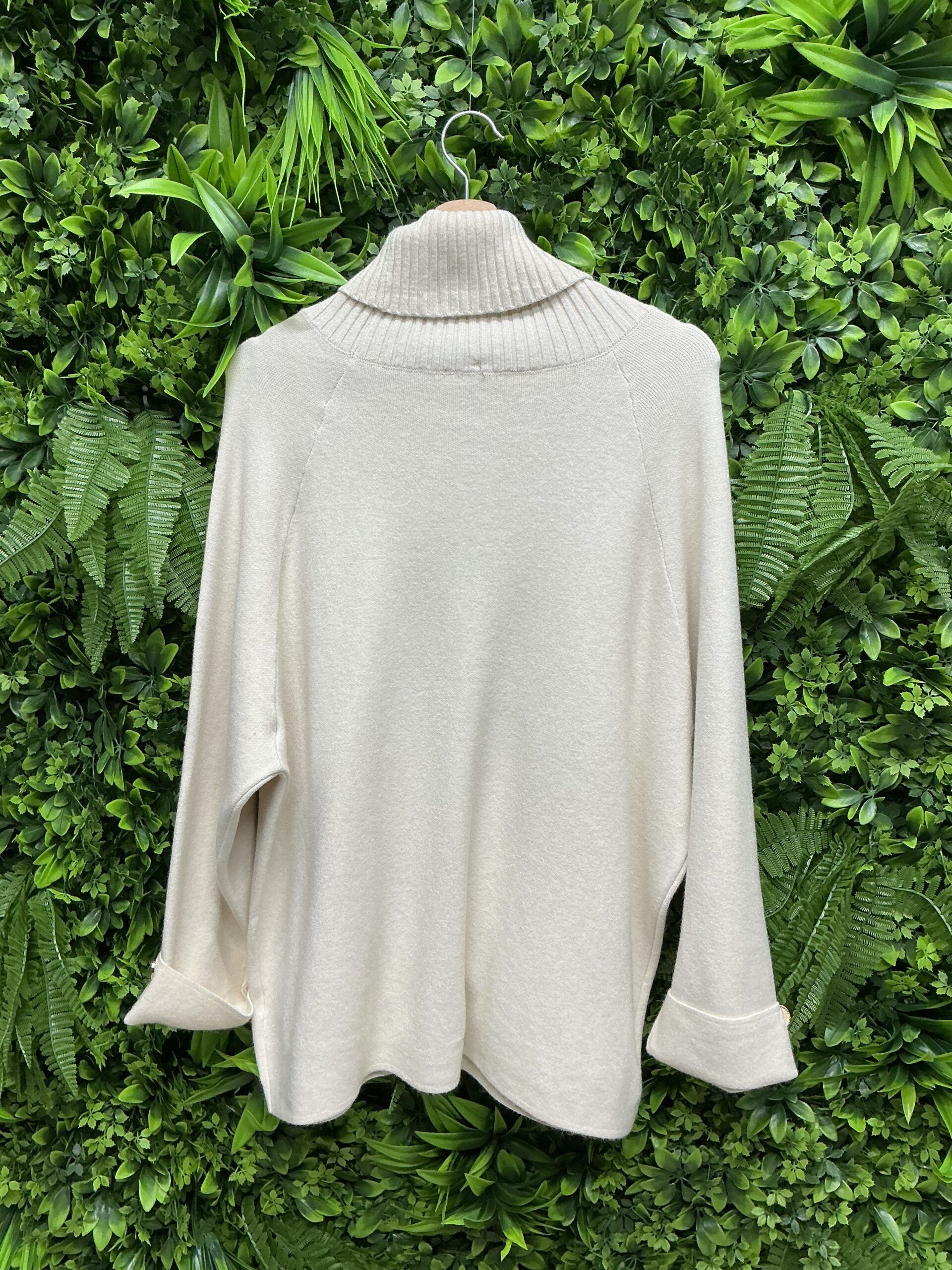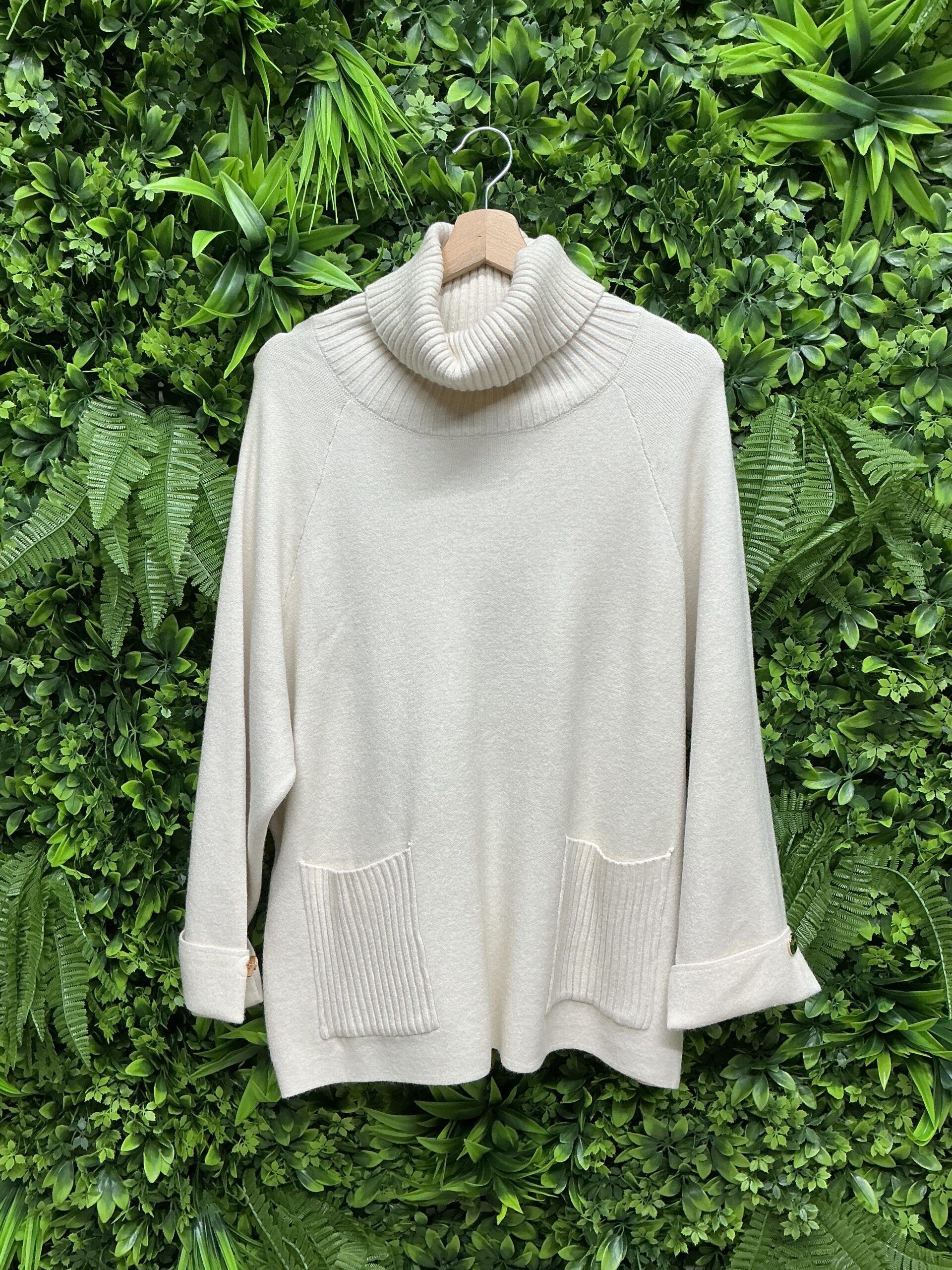 Maglione donna collo alto in viscosa e modale, ideale per l’inverno, con pratiche tasche. Prodotto in Cina per l’Autunno/Inverno 2025/2026.