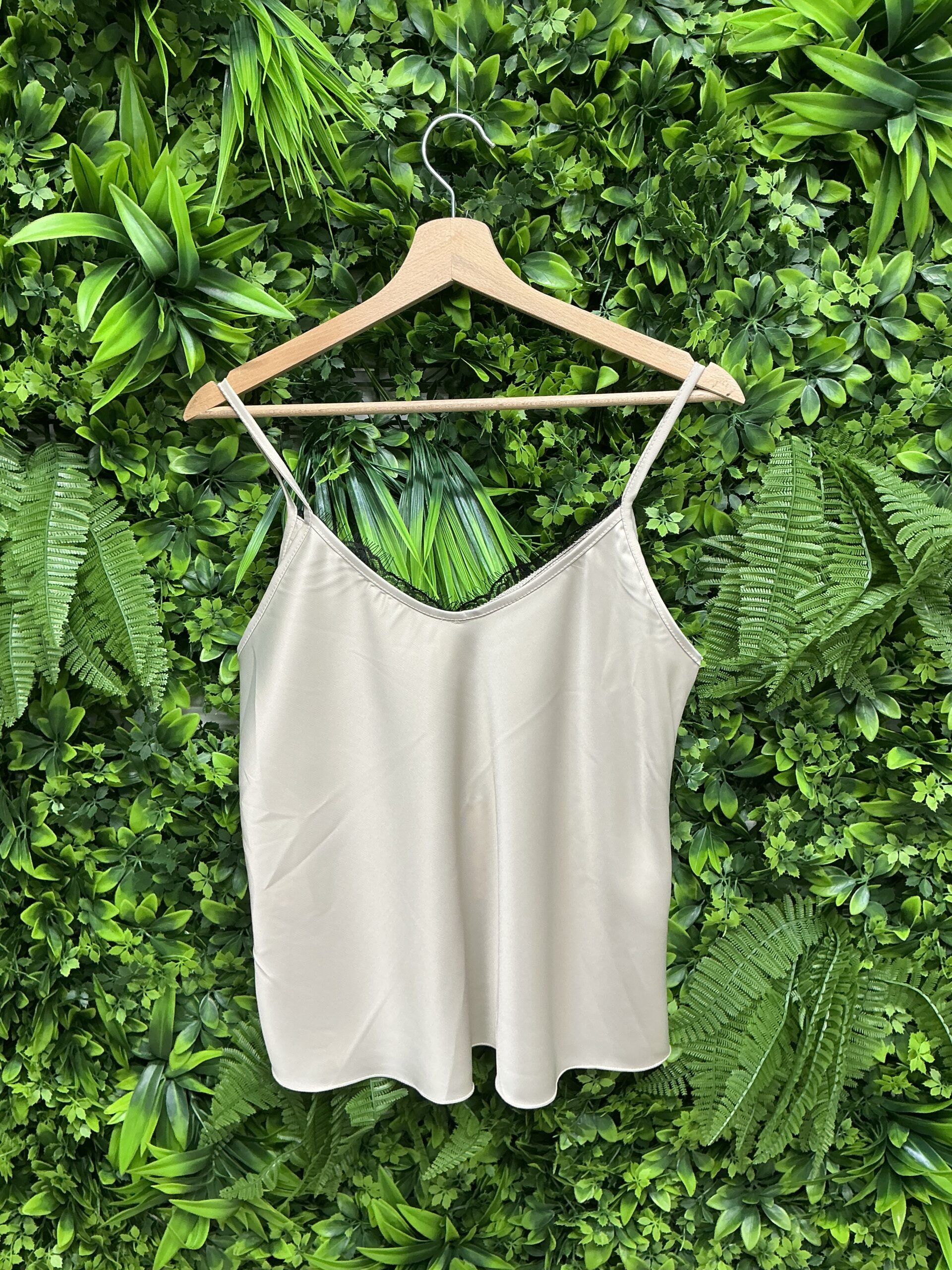Top in raso di poliestere, scollo a V, dettagli in pizzo, ideale per serate autunnali, taglia unica, perfetto per ogni donna.